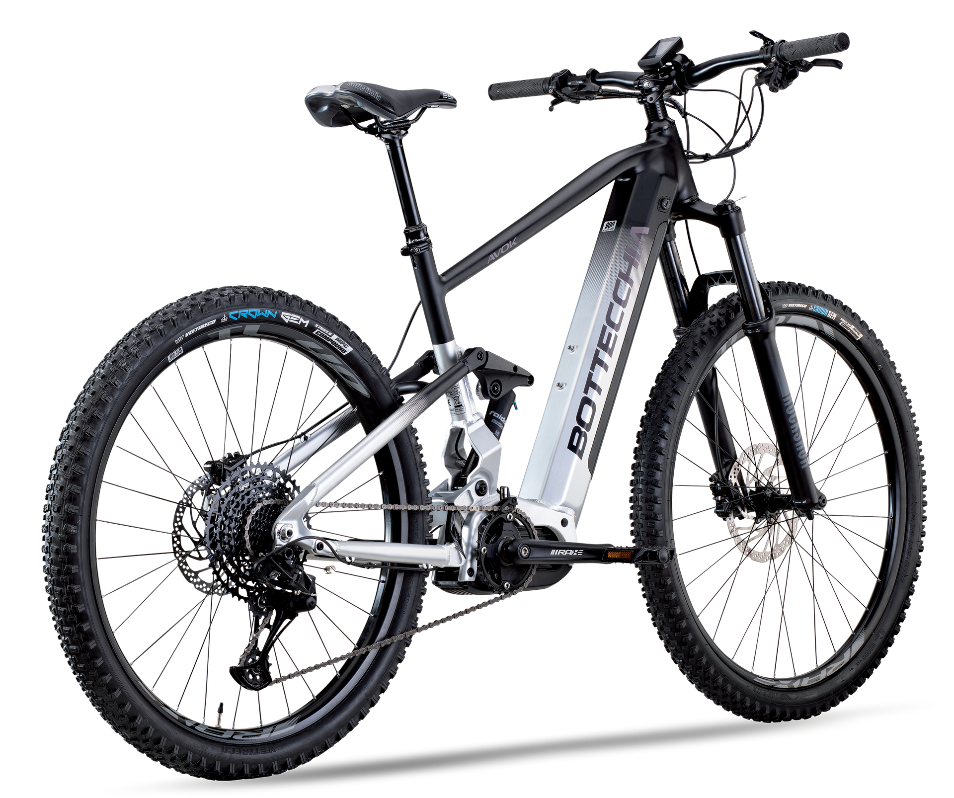 AVOK abbatte i limiti di percorso con la nuova batteria da 900Wh ad elevata autonomia. Più capacità nello stesso spazio, per una straordinaria capacità, allo stesso peso delle stesse batterie da 630Wh. Il motore OLI SPORT PLUS completa perfettamente il sistema elettrico, con la sua potenza da 250W e coppia massima da 85 Nm. Massima attenzione anche al nuovo telaio full 29”/27.5”, progettato per un anteriore più preciso e maneggevole, e un posteriore che offre più trazione e aderenza. L’equipaggiamento di serie prevede infatti ruota anteriore da 29” x 2.30 per caricare con più confidenza l’avantreno e ottenere maggiore precisione di guida, superando gli ostacoli in modo più facile e reattivo. E ruota posteriore più larga da 27.5” x 2.6 per assorbire le asperità in discesa e aumentare la presa nelle salite tecniche.