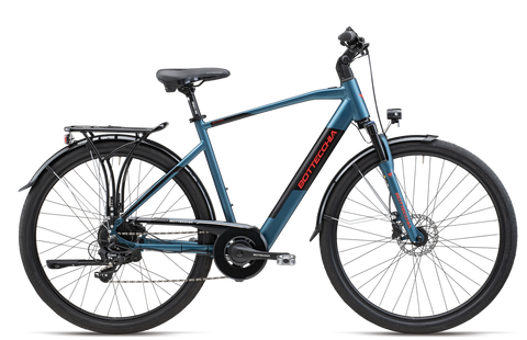 Il telaio in alluminio HPG da 28″ con batteria completamente integrata è abbinato al motore al mozzo per una guidabilità particolarmente fluida e maneggevole. La batteria ultra slim è totalmente inserita sul downtube, e facilmente ricaricabile tramite l'apposito jack di ricarica. Il cambio Shimano a 8 rapporti e il freno idraulico contribuiscono al comfort di guida. L’equipaggiamento di serie prevede inoltre parafanghi, portapacchi, predisposizione per cesto anteriore e impianto luci, per un perfetto set up da città.