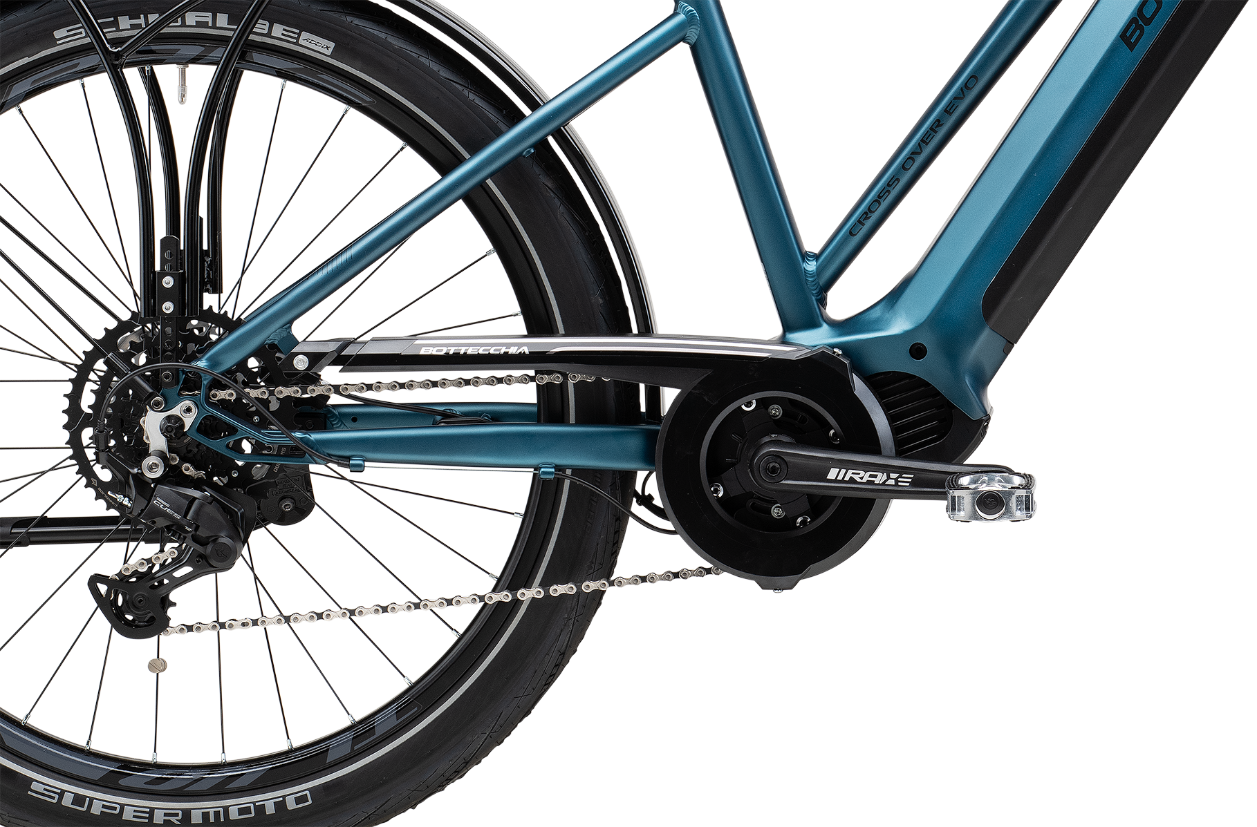 CROSS OVER EVO is part of the line of e-bikes equipped with a 900 Wh INFINITY battery and super autonomy increased up to 300 km. This mileage, never achieved before, is supported by the powerful 250W OLI engine, designed with an extremely sensitive latest-generation hi-tech effort sensor, which is activated by simply pressing the pedal regardless of rotation. The intelligent assistance is activated based on the pressure exerted on the pedal, so that the progressive support of the engine automatically adapts to the driving situation. The 85 Nm torque allows you to develop enough power to tackle any type of route naturally.