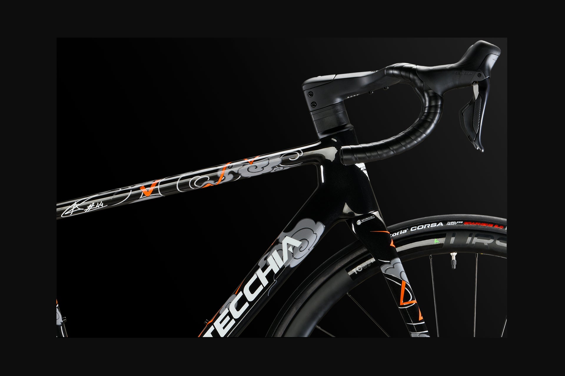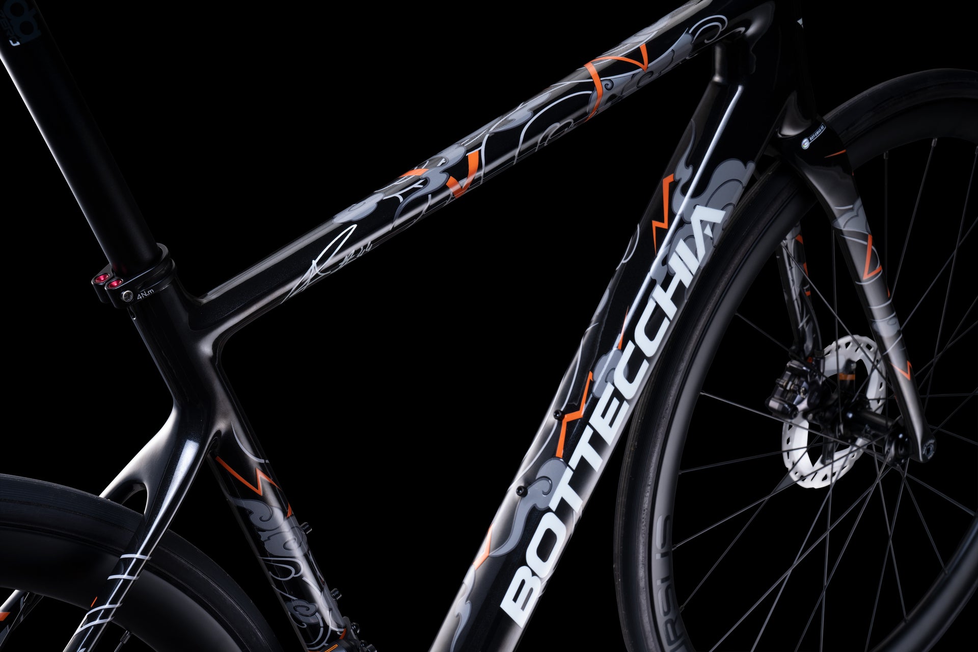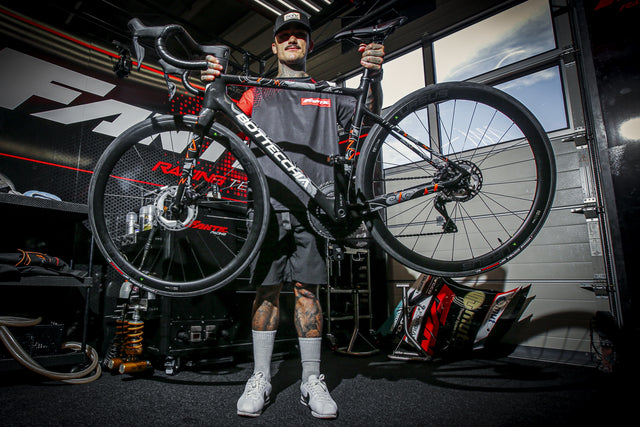 For Canet the top road bike EMME 4 in an absolutely iconic Limited Edition, like Aron's style. Unique Made in Italy design with custom graphics on the entire carbon frame, personalized in detail.