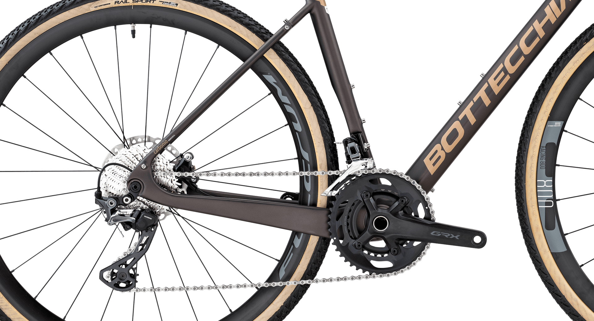 GRAVEL CARBON with light monocoque UD disc carbon frame, disc brakes, 12mm thru axle is the bike designed for the most demanding gravel routes. The powerful disc brakes, the oversized 700x40 gravel tires and the comfortable geometries offer further traction and stability making it reliable in every situation. Available in the 11-speed Sram Apex setup, or in the two Shimano GRX400 and GRX600 versions with 20 and 22 speeds specific for gravel biking.