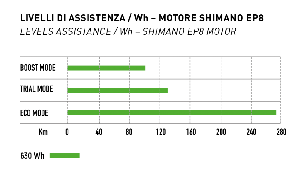 É possibile scegliere tra 10 livelli di servoassistenza. 5 livelli di servoassistenza in partenza oppure si può selezionare la coppia massima più adeguata scegliendo tra tre modalità (Eco, Trail e/o Boost).