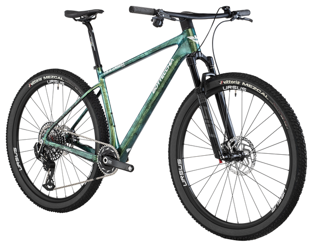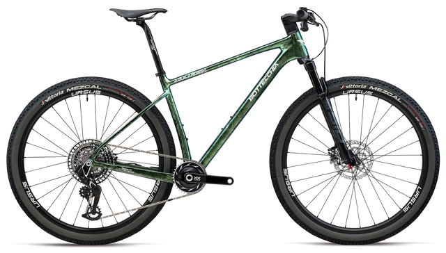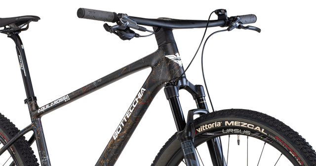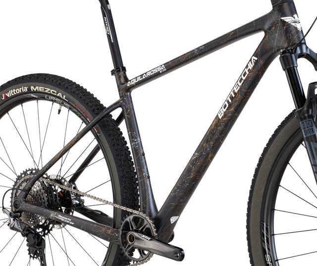 Bici ufficiale del Bottecchia Factory Team, permette di affrontare le salite più insidiose con efficienza, e di conquistare le discese veloci in totale sicurezza. Il telaio super light è in carbonio UD monscocca ad alto modulo, estremamente reattivo e resistente, offre sicurezza e grande manovrabilità per padroneggiare al meglio anche i track più impegnativi. La geometria HPG (High Performace Geometry) è pensata per i trail con un angolo del tubo sella perfetto per la salita, e un’inclinazione del tubo sterzo progettata per aumentare la stabilità e il controllo anche nelle discese più tecniche. La revisione del triangolo posteriore conferisce al nuovo Aquila Rossa Evo maggiore reattività nei rilanci e efficienza in salita. La forcella ammortizzata con 100mm di escursione assorbe gli urti dovuti alle asperità del terreno, mentre i pneumatici fino a 2,35 mm aumentano la trazione su percorsi accidentati. Nuova anche la predisposizione per forcellino Sram UDH, compatibile con tutti i sistemi di trasmissione, che assicura maggiore protezione al cambio e al telaio in caso di urto e permette una più precisa