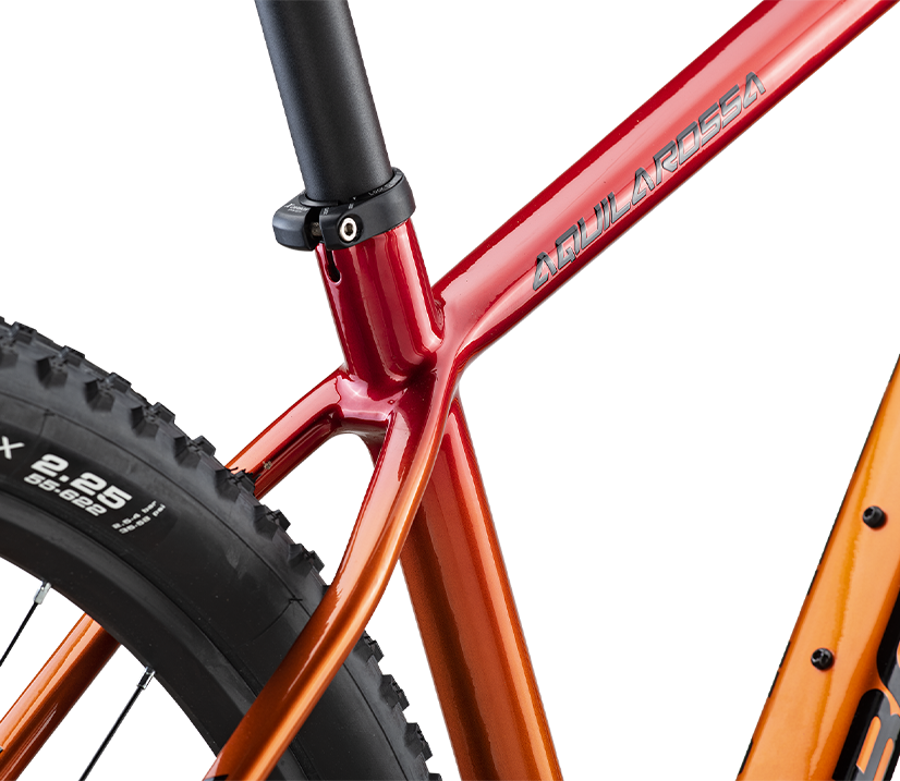 Bici ufficiale del Bottecchia Factory Team, permette di affrontare le salite più insidiose con efficienza, e di conquistare le discese veloci in totale sicurezza. Il telaio super light è in carbonio UD monscocca ad alto modulo, estremamente reattivo e resistente, offre sicurezza e grande manovrabilità per padroneggiare al meglio anche i track più impegnativi. La geometria HPG (High Performace Geometry) è pensata per i trail con un angolo del tubo sella perfetto per la salita, e un’inclinazione del tubo sterzo progettata per aumentare la stabilità e il controllo anche nelle discese più tecniche. La revisione del triangolo posteriore conferisce al nuovo Aquila Rossa Evo maggiore reattività nei rilanci e efficienza in salita. La forcella ammortizzata con 100mm di escursione assorbe gli urti dovuti alle asperità del terreno, mentre i pneumatici fino a 2,35 mm aumentano la trazione su percorsi accidentati. Nuova anche la predisposizione per forcellino Sram UDH, compatibile con tutti i sistemi di trasmissione, che assicura maggiore protezione al cambio e al telaio in caso di urto e permette una più precisa